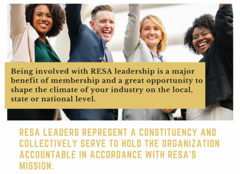 Each year in October, RESA members are eligible to serve on the board of their local chapter. Submissions must be made here, electronically, not to be submitted locally. Members are strongly encouraged to get involved with leadership. Chapters require new leadership to keep the chapters going, a major benefit of membership. Leadership positions have a term of one year and a maximum of 2 years in the same position.