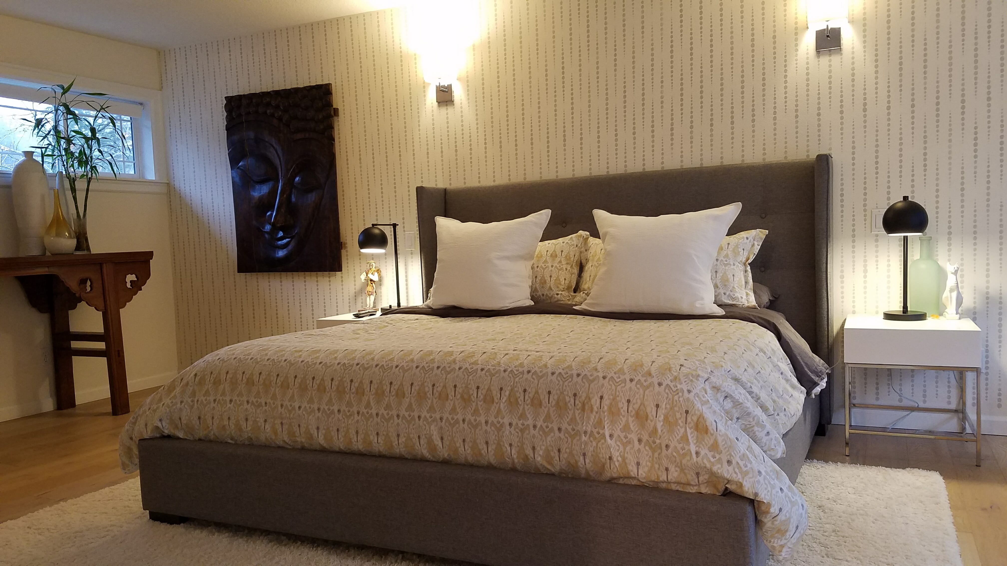 A few weeks after The Home Staging Industry Awards, David posted a photo of his newly redesigned bonus room. The first thing I noticed was the vintage inspired green couch along with a perfectly paired contemporary piece of art that hung right above, and I thought to myself, “Oh My! I need to get David to allow us to feature his home on the Home Staging Newswire” and lucky for us he said yes!