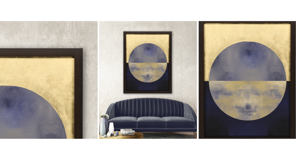 - Sara Lang designed this Geometric piece and we can’t get enough! Staging with geometric patterns made a come back in 2018, and it looks like they will be sticking around for a while longer – and we are ok with that! Geometric pieces are versatile and can work in many markets. Did you also notice the hand applied gold leaf?(Item Name: Blue Sphere II)