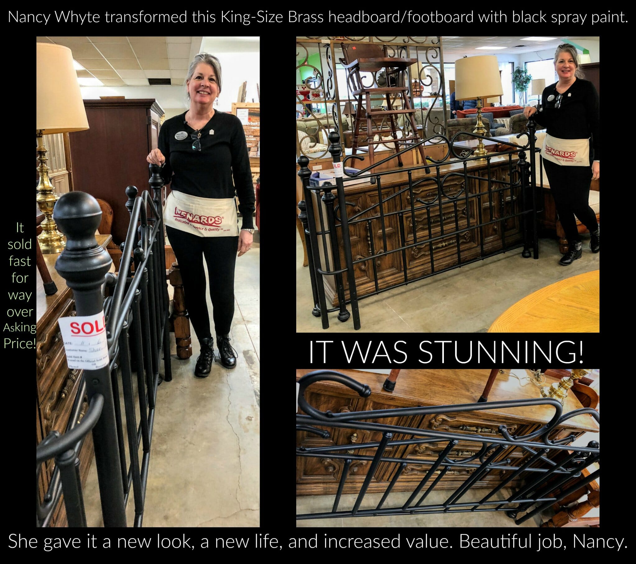 1. Nancy Whyte of Whyte House Staging. She repurposed a brass headboard and foot board. She painted it black, and it sold immediately for nearly double the original price. She also repurposed several cabinet doors. The Restore will use these to demonstrate how to repurpose.