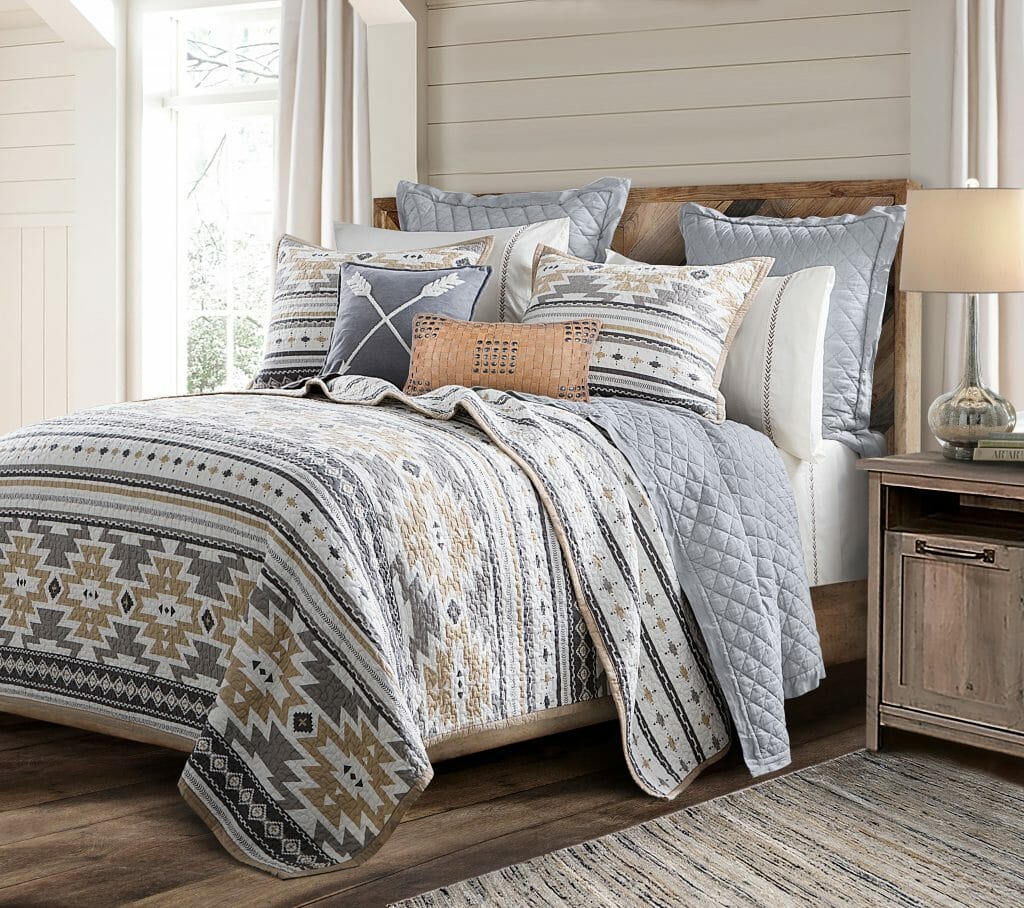 To attract more customers, here at HiEnd Accents we’re big fans of layering the duvet or comforter with a light quilt or coverlet for that designer look. Which one you choose depends on the style you’re going for. We offer quilt designs that cover all lifestyles from modern farmhouse, traditional, transitional to coastal, southwest, lodge and rustic.
