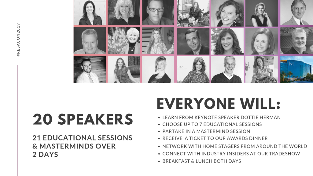 Whether you are just starting out in the industry or a seasoned stager with staff working under you, there is something at RESACON 2019 for you! Grow your business, become more efficient and become more connected by learning from industry leaders at the must attend convention for home stagers. RESA HQ has really turned it up a notch for this years event and is focusing on the big-business side of things.